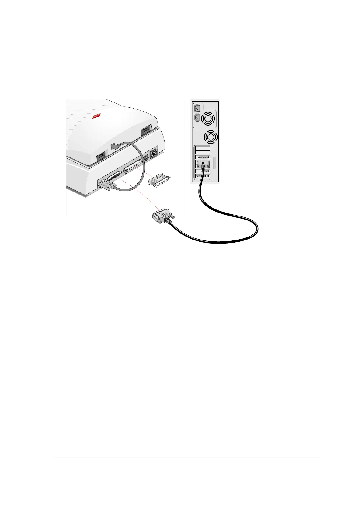 Connect the smaller 25-pin end of the SCSI cable to the connector of the scanner.