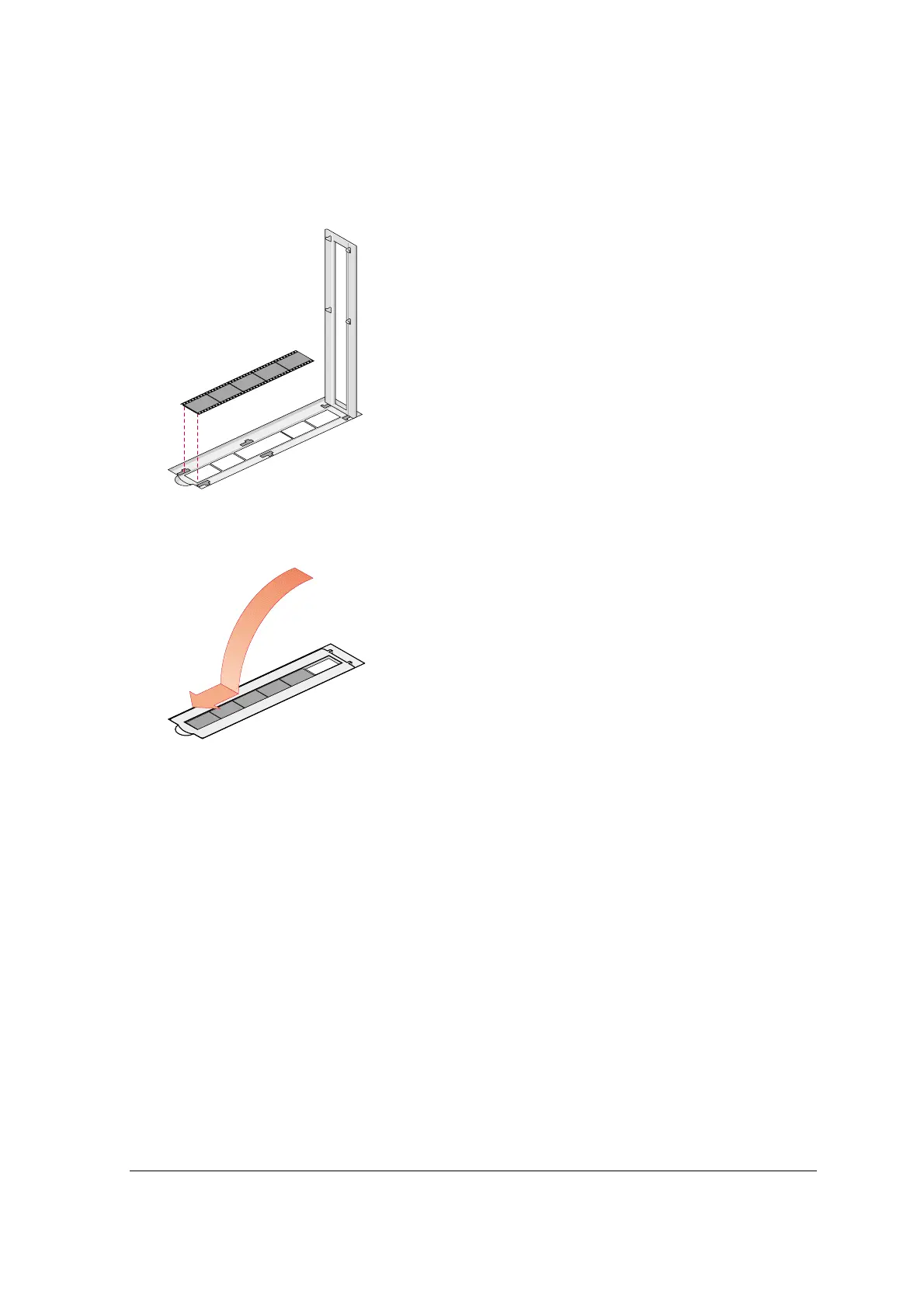 One strip of maximum 6 negatives and 2 slides can be mounted into the holder which is then