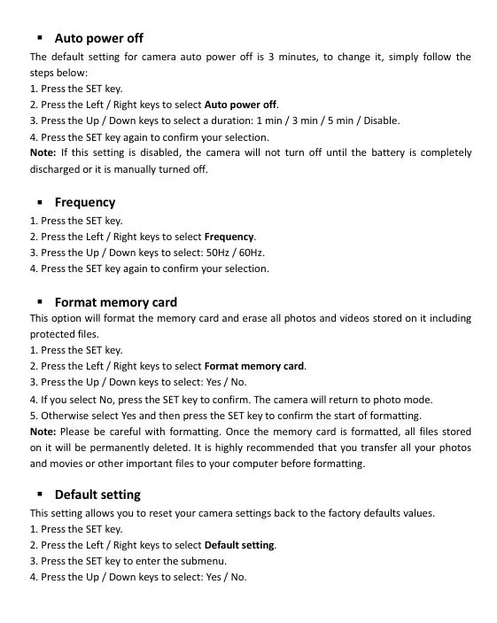 EŽƚĞ /Ĩ ƚŚŝƐ ƐĞƚƚŝŶŐ ŝƐ ĚŝƐĂďůĞĚ ƚŚĞ ĐĂŵĞƌĂ ǁŝůů ŶŽƚ ƚƵƌŶ ŽĨĨ ƵŶƚŝů ƚŚĞ ďĂƚƚĞƌLJ ŝƐ ĐŽŵƉůĞƚĞůLJ