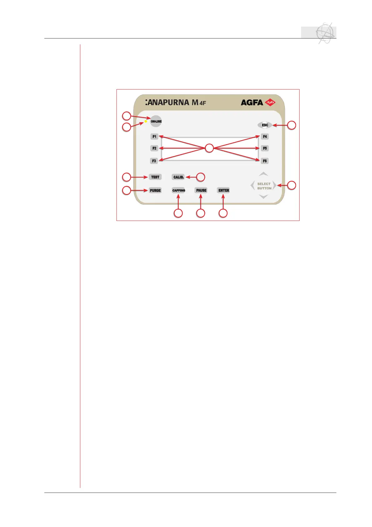 (1) ON-LINE : When the LED (2) is on, the system is On-line and is ready to