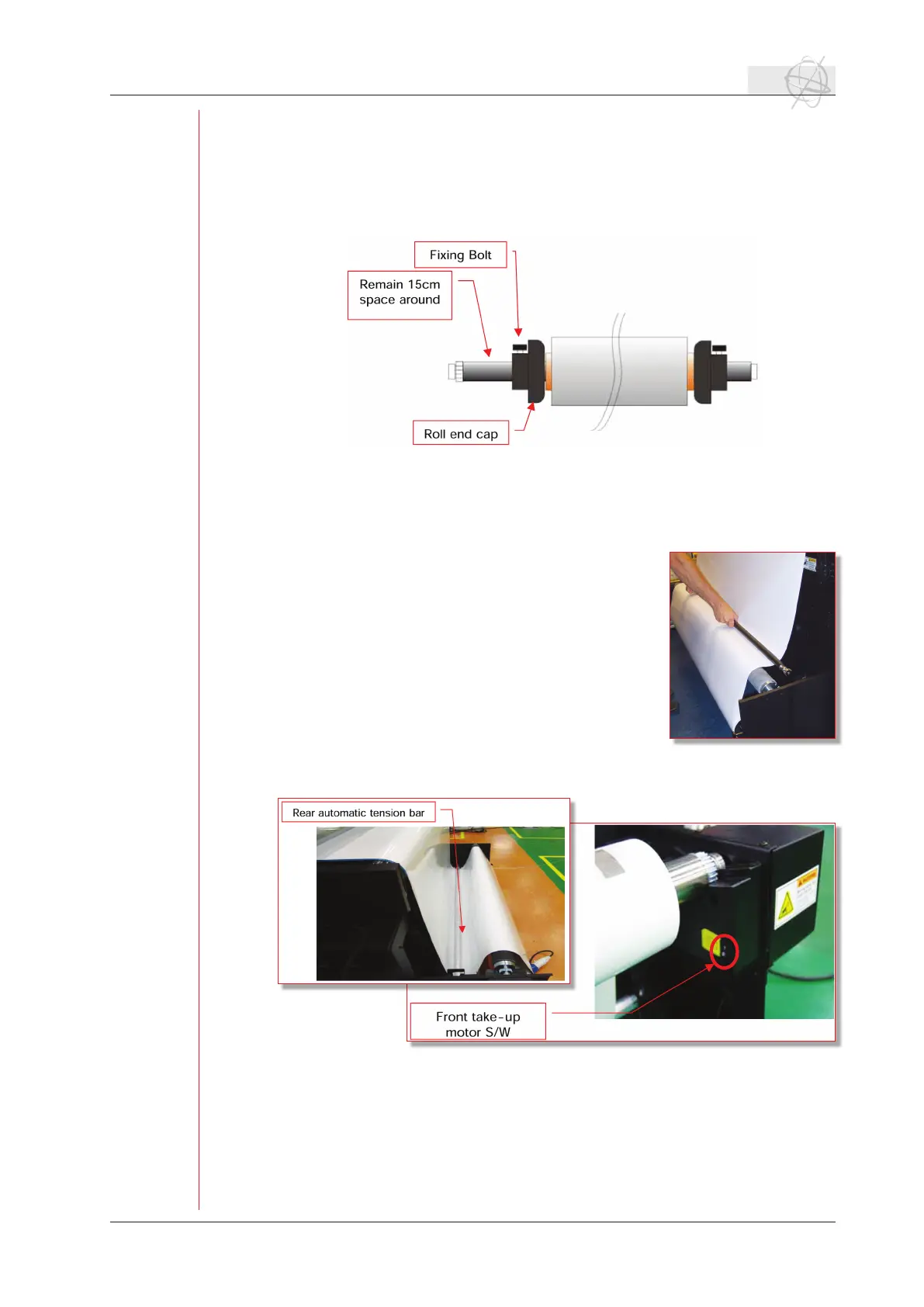 tioned on the left side of the printer and put the media roll bar in its holders.