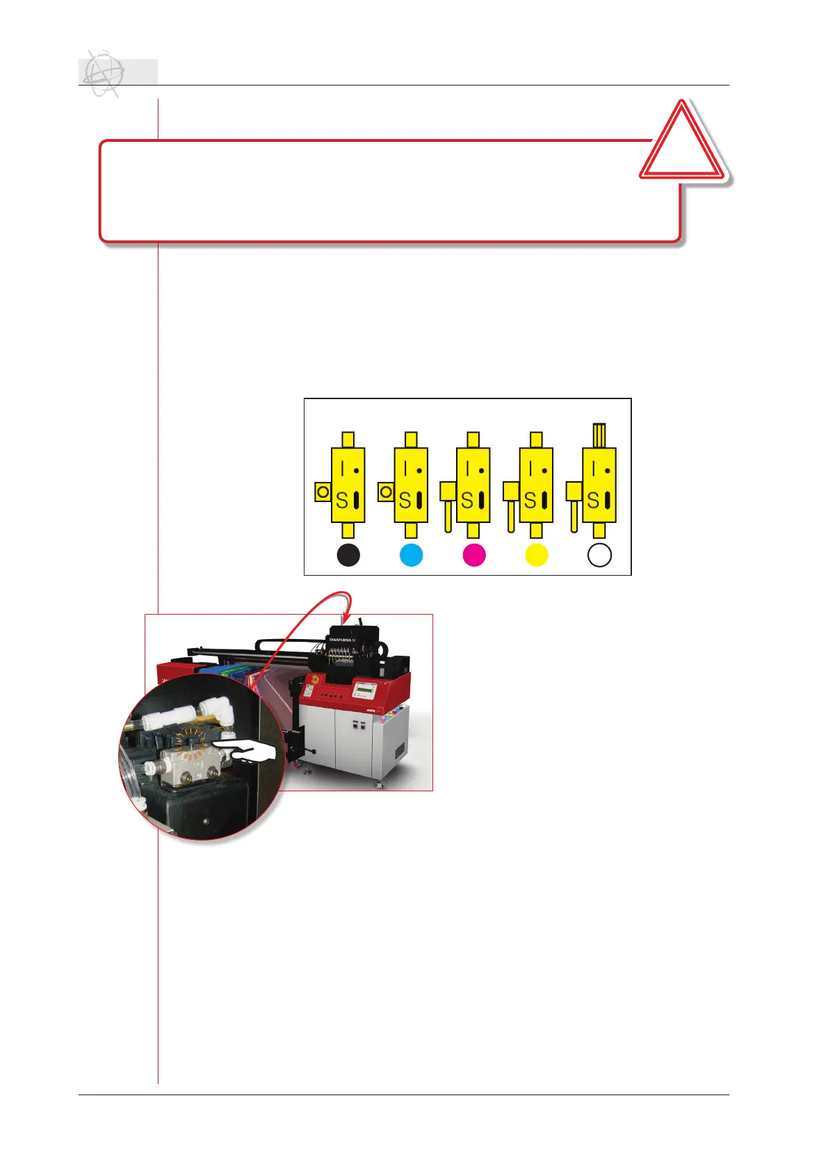 The magenta, yellow and solution valves are switche to “S”.