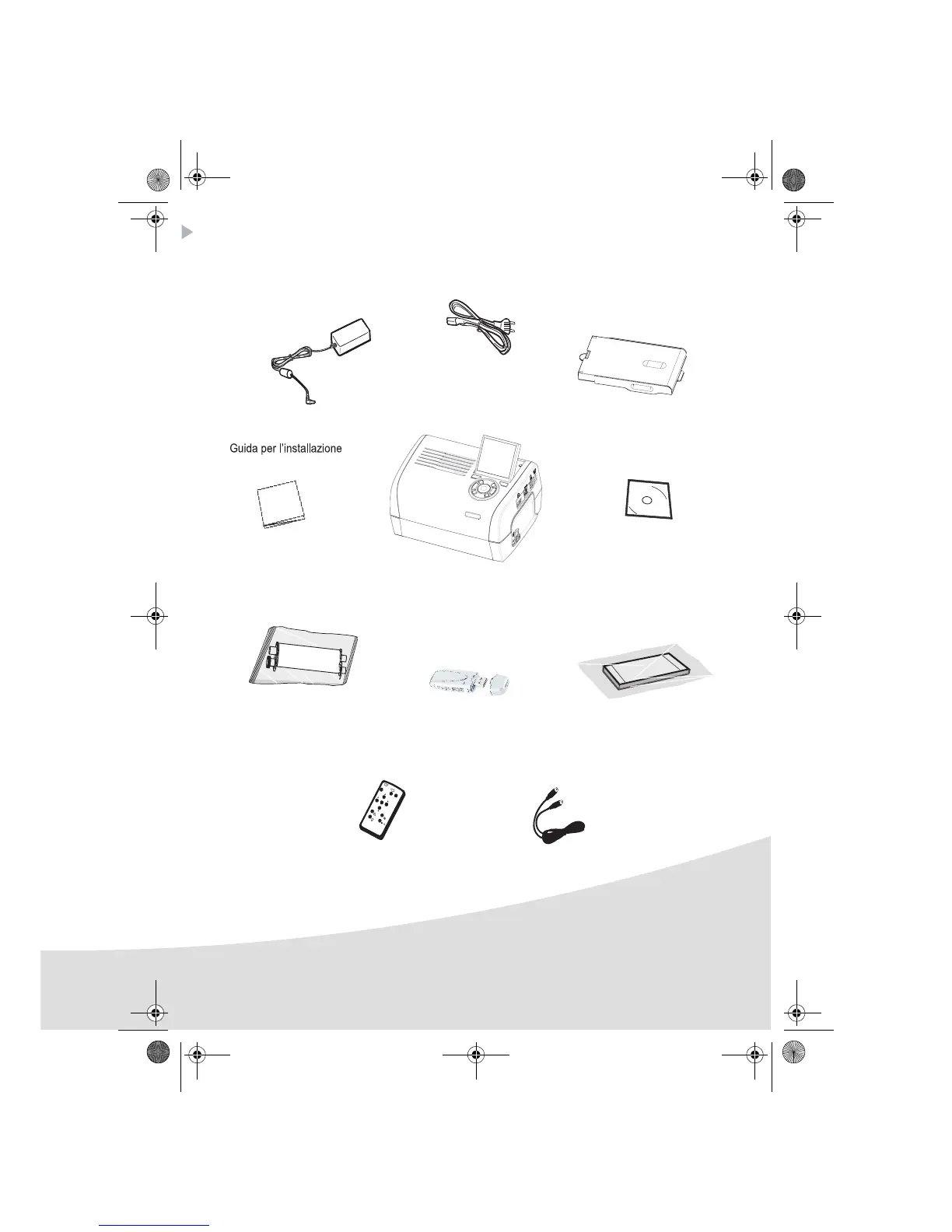 Disponete la scatola davanti a voi, estraete i vari elementi della stampante, verificando che gli