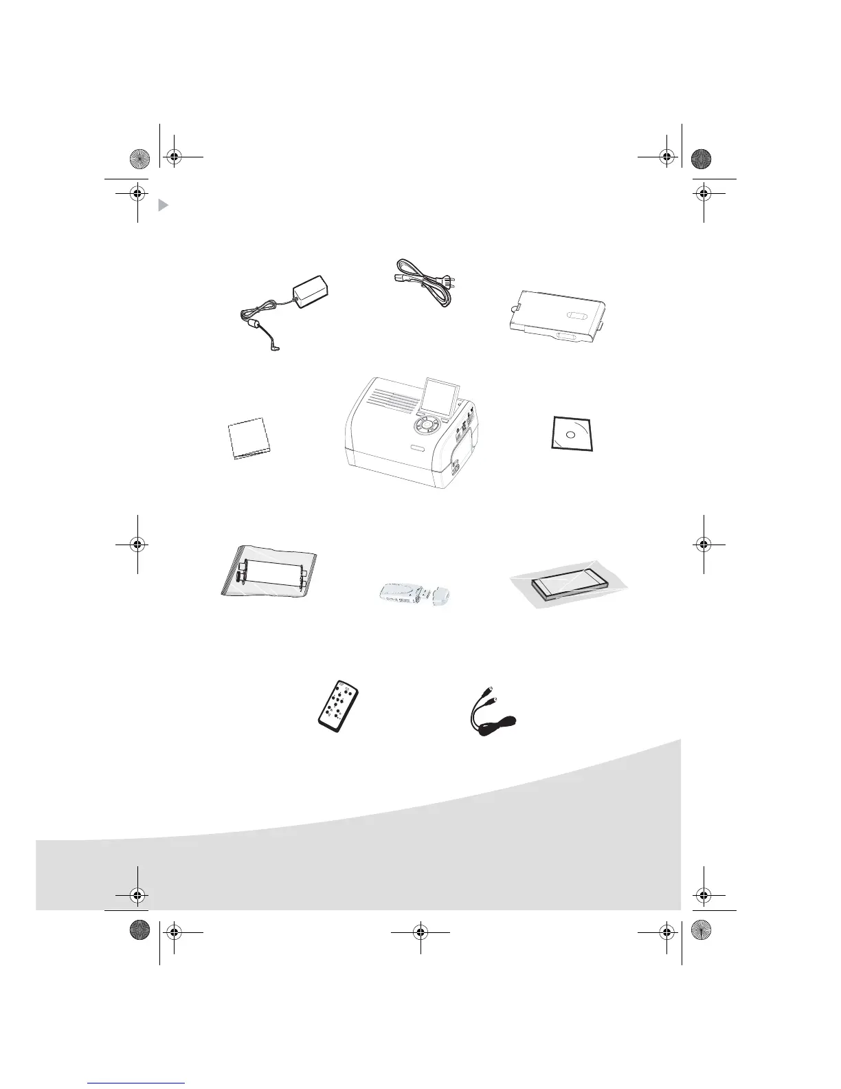 Placera lådan framför dig, plocka ut skrivarens olika delar och kontrollera att nedanstånde finns med: