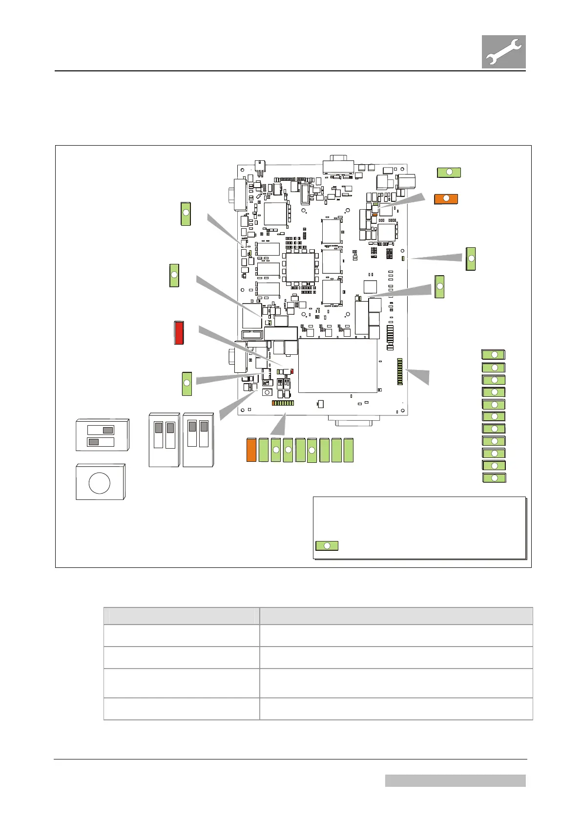 + 5 V Green LED, default ON. Voltage +5 V okay.