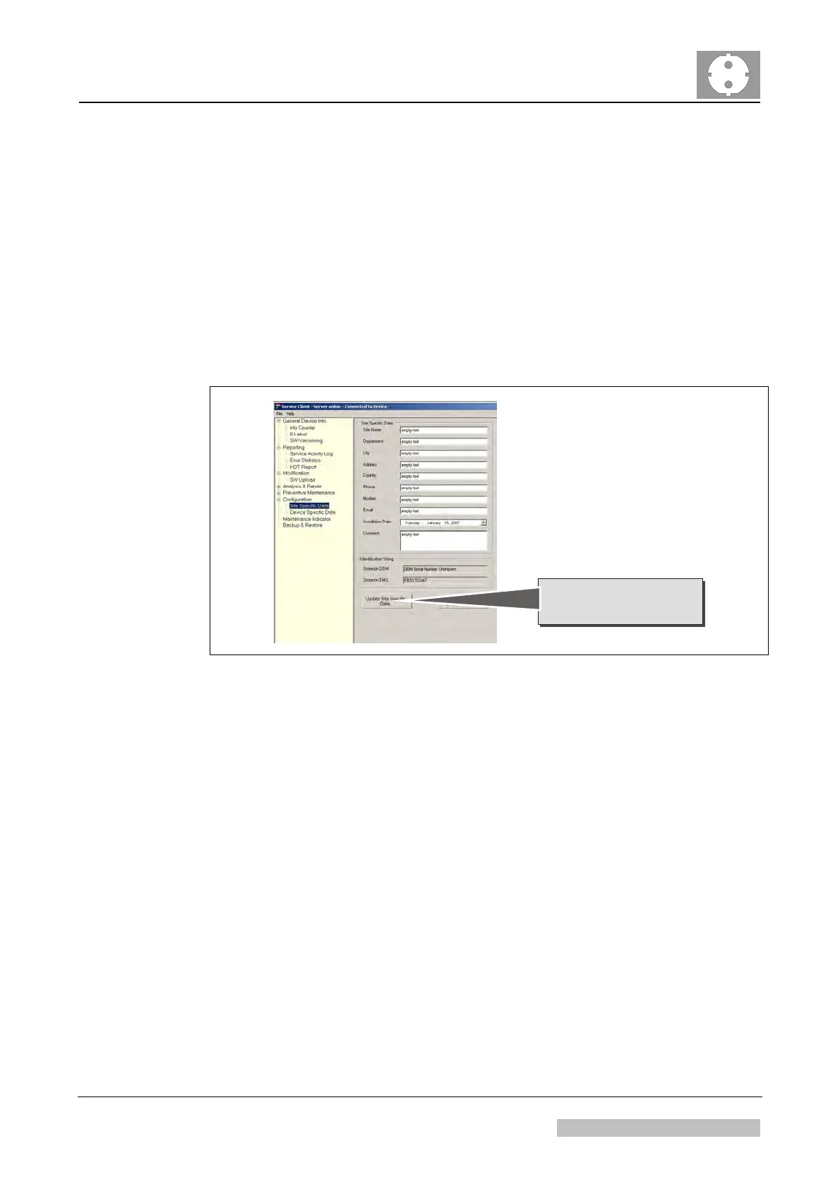 5.1 Filling in of Site specific Data