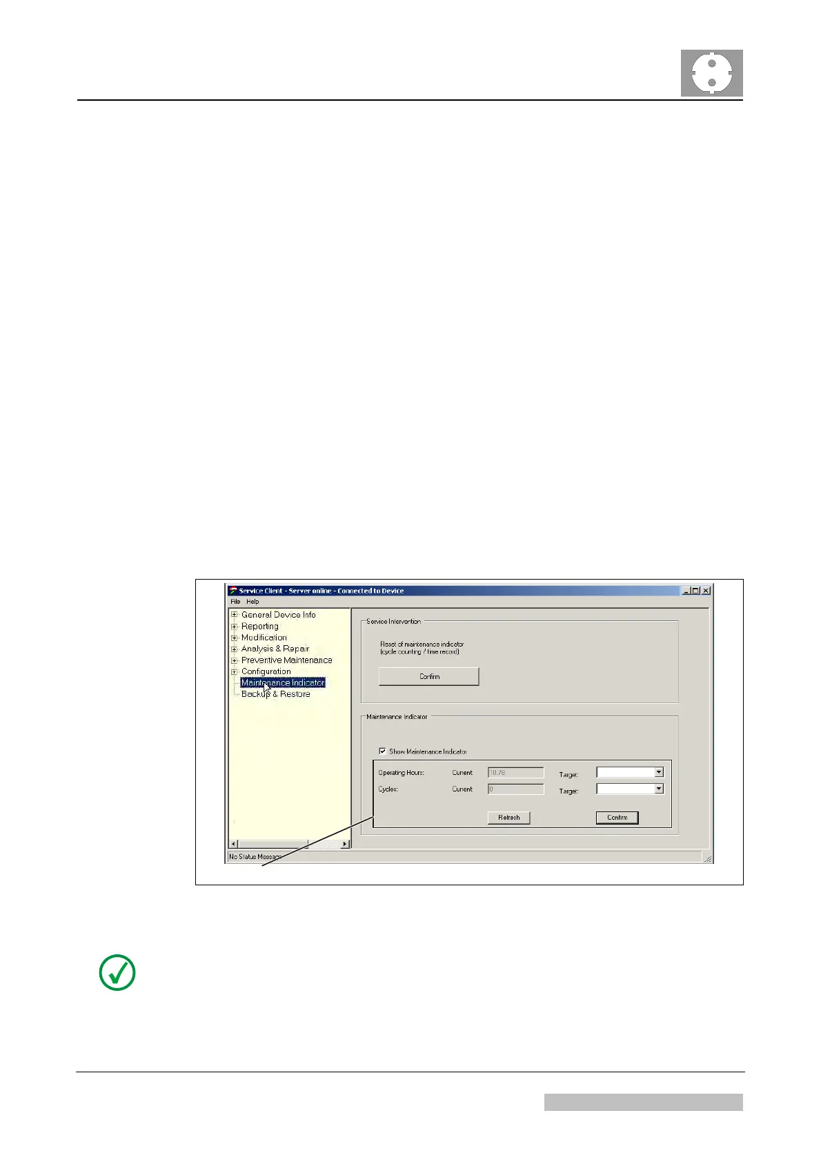 (1) In the CR 30-X Service Client select <Maintenance Indicator>.