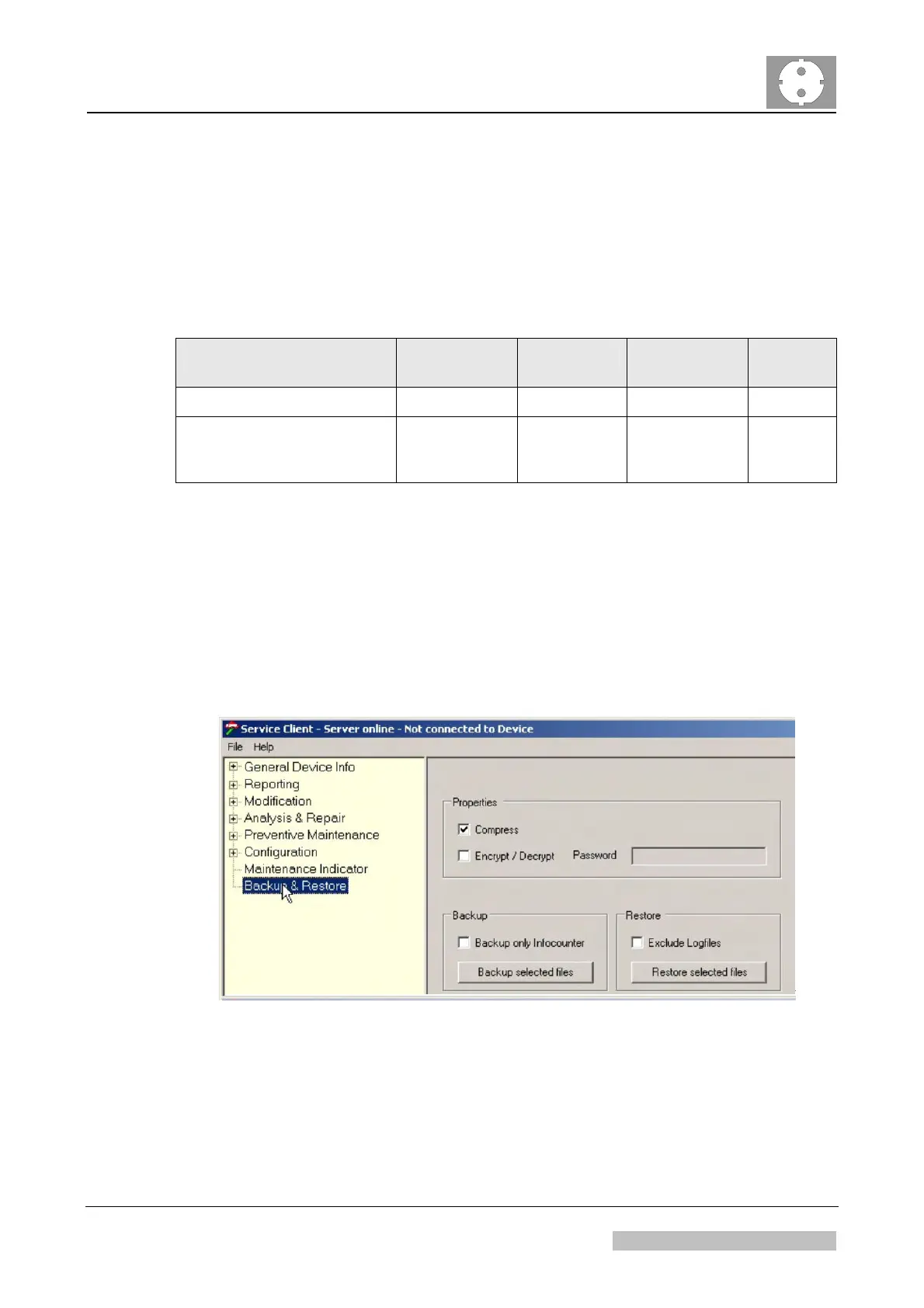 (1) In the CR 30-X service client select the menu <Backup & Restore>.