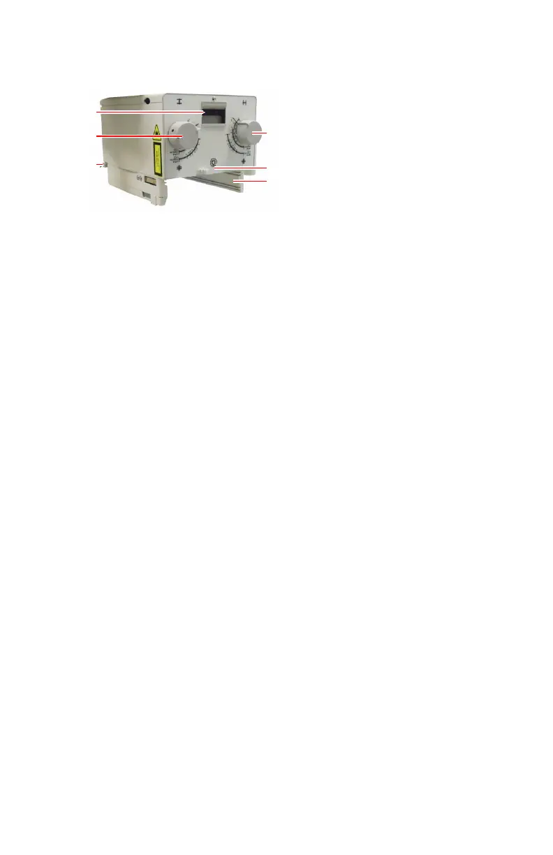 The measurement tape is at the rear side of the collimator.