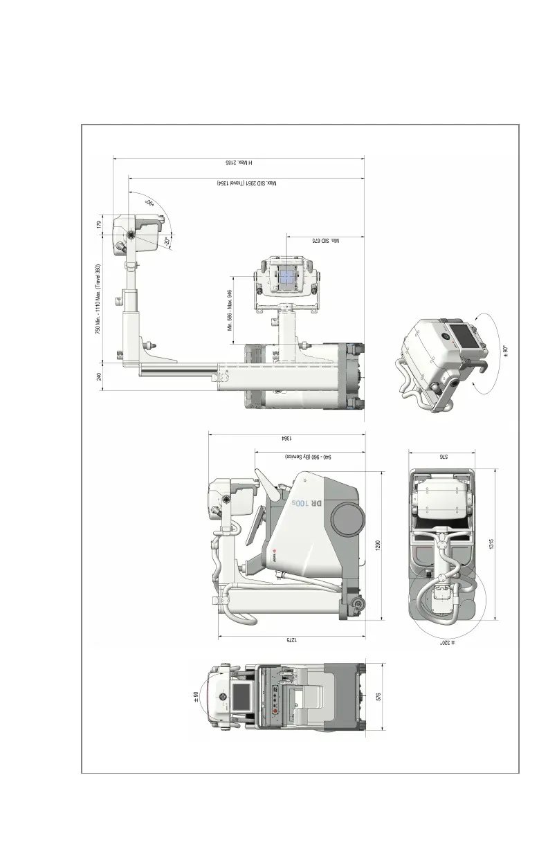 Table 28: Dimensions of the system with telescopic column