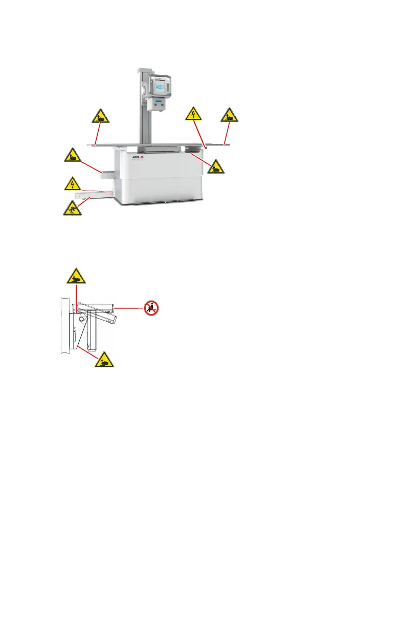 AGFA DR 400 - Warning Labels on the Radiographic Table; Warning Labels on the Radiographic Wall Stand