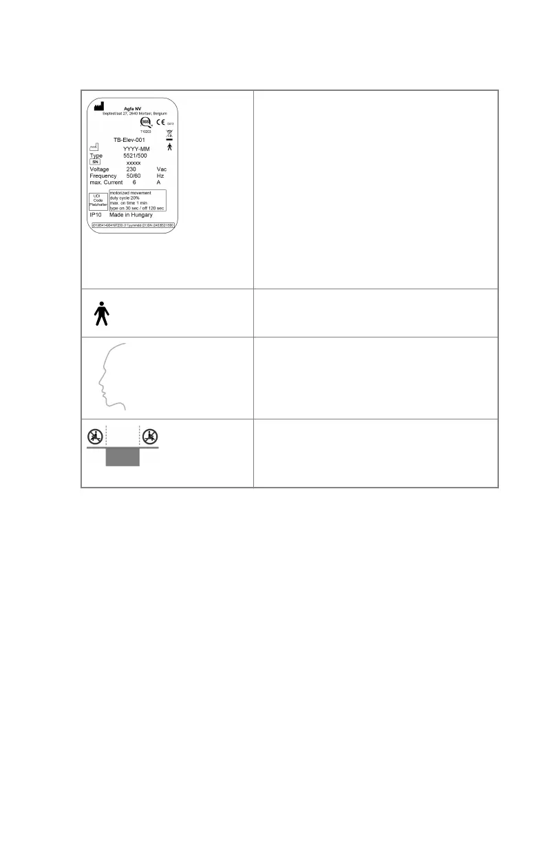 Warning labels on the radiographic table on page 58