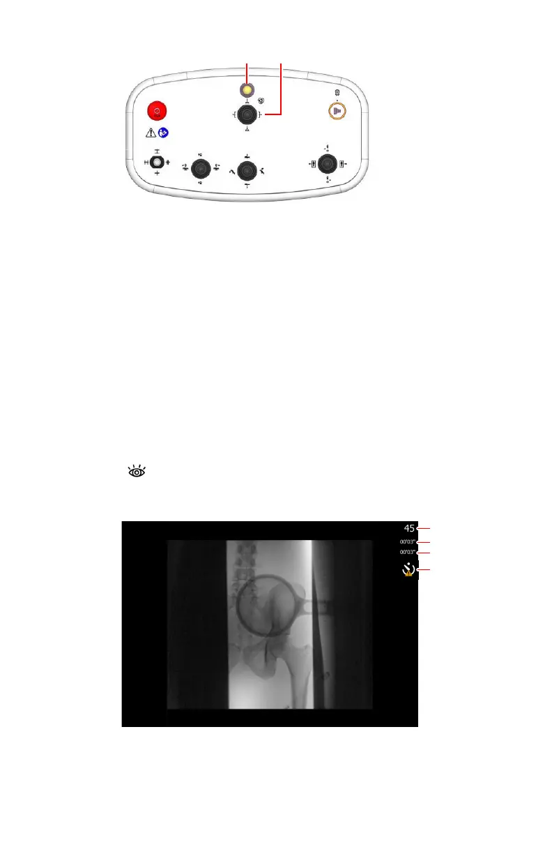 a) Press and hold down the fluoroscopy pedal to view a real-time