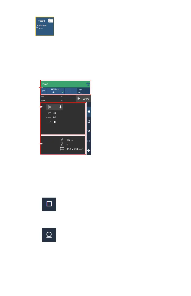 parameters and X-ray system position for the selected examination are