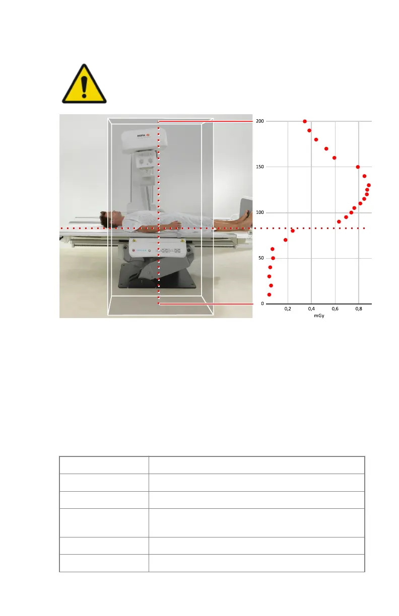 central X-ray beam) and height range of stray radiation measurement (0