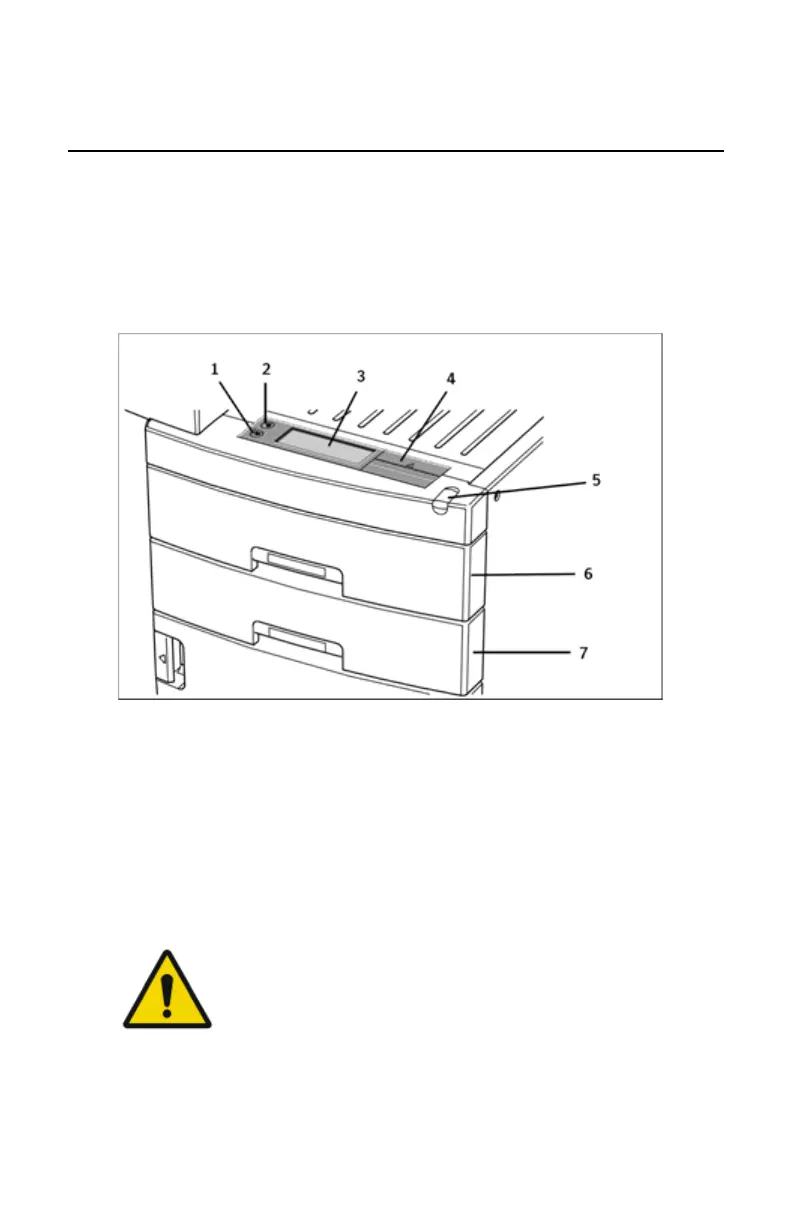 The printer interfaces with the user via the following controls: