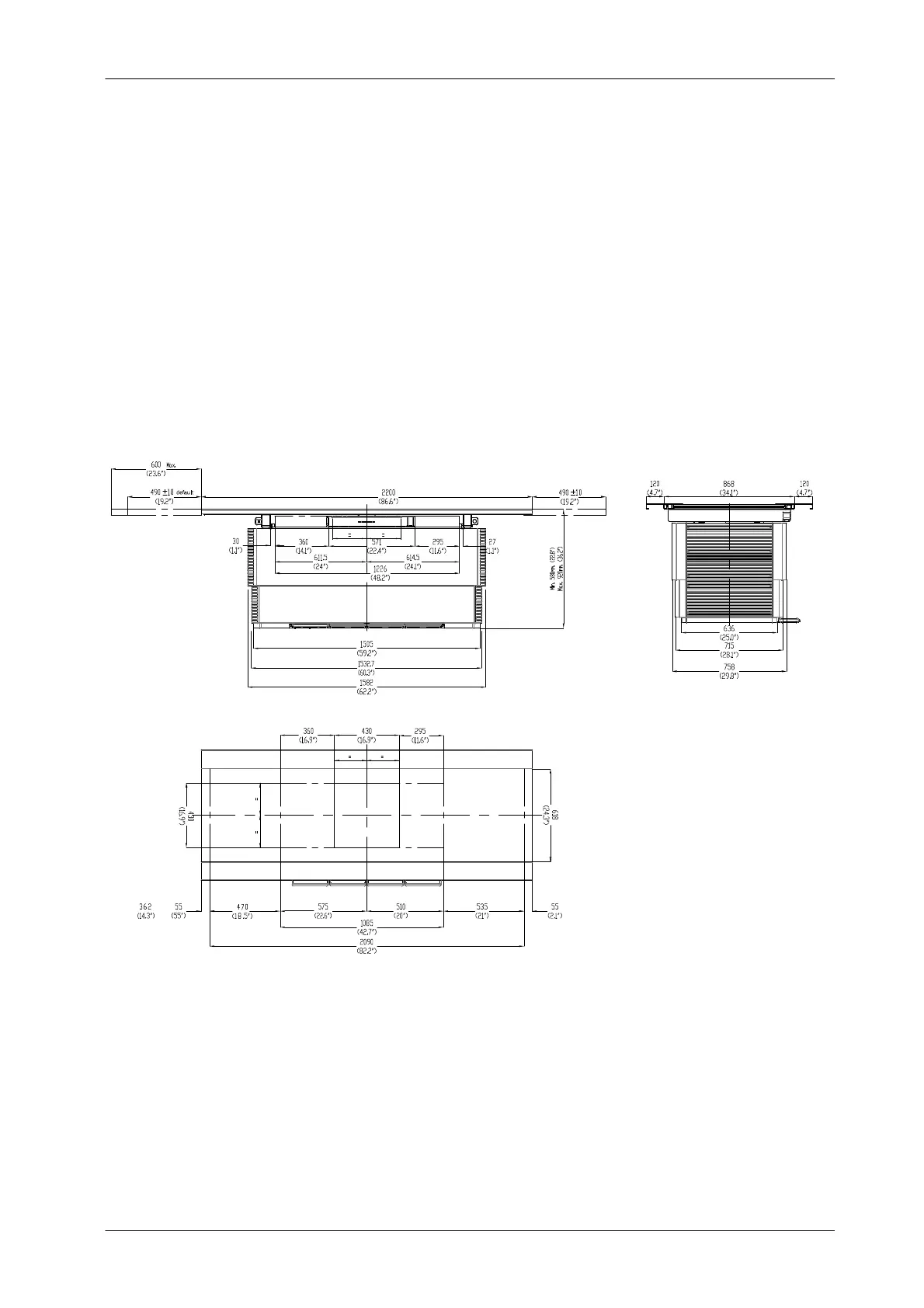 the left side to 600 mm (23.6”).
