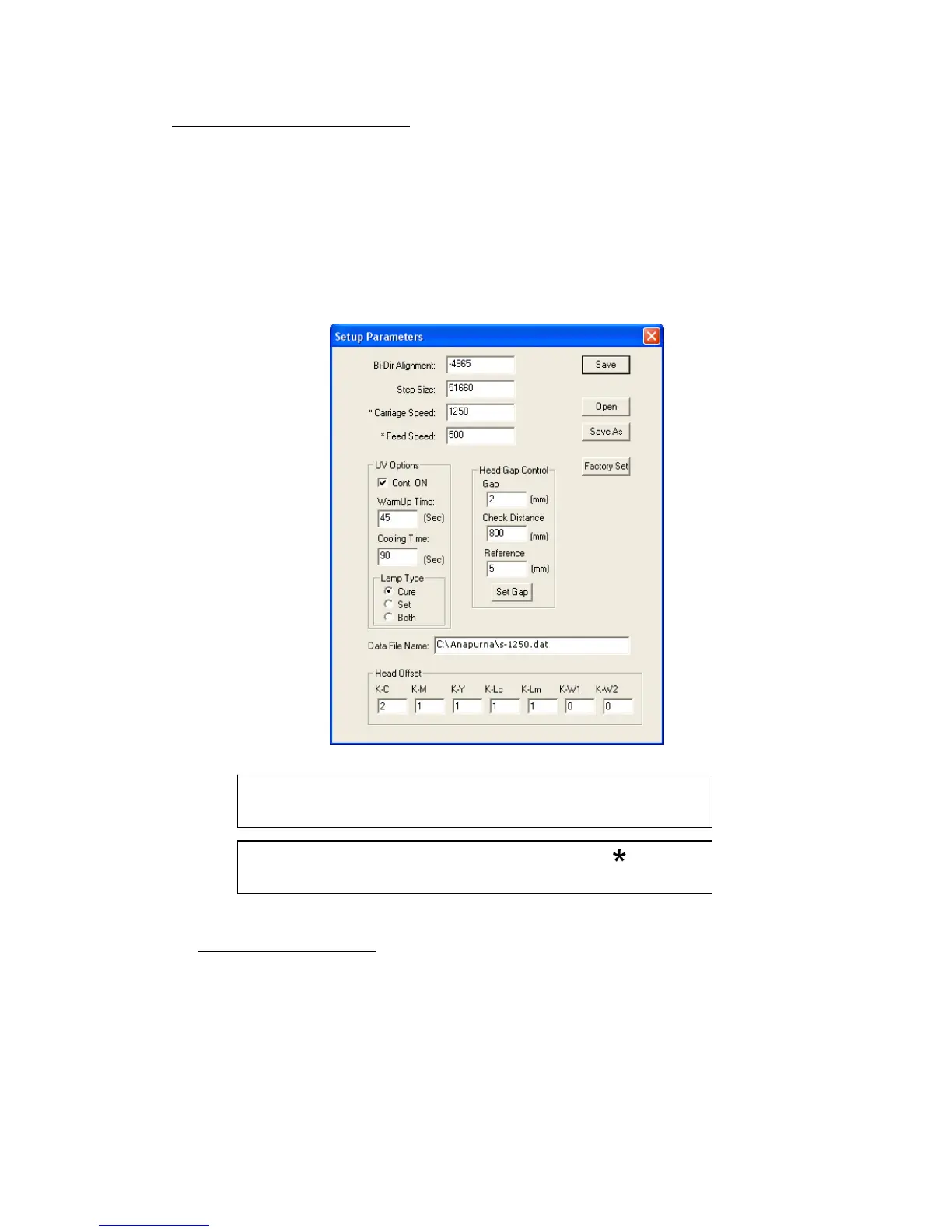 Carriage speed, Bi-Dir alignment, Step size, etc.