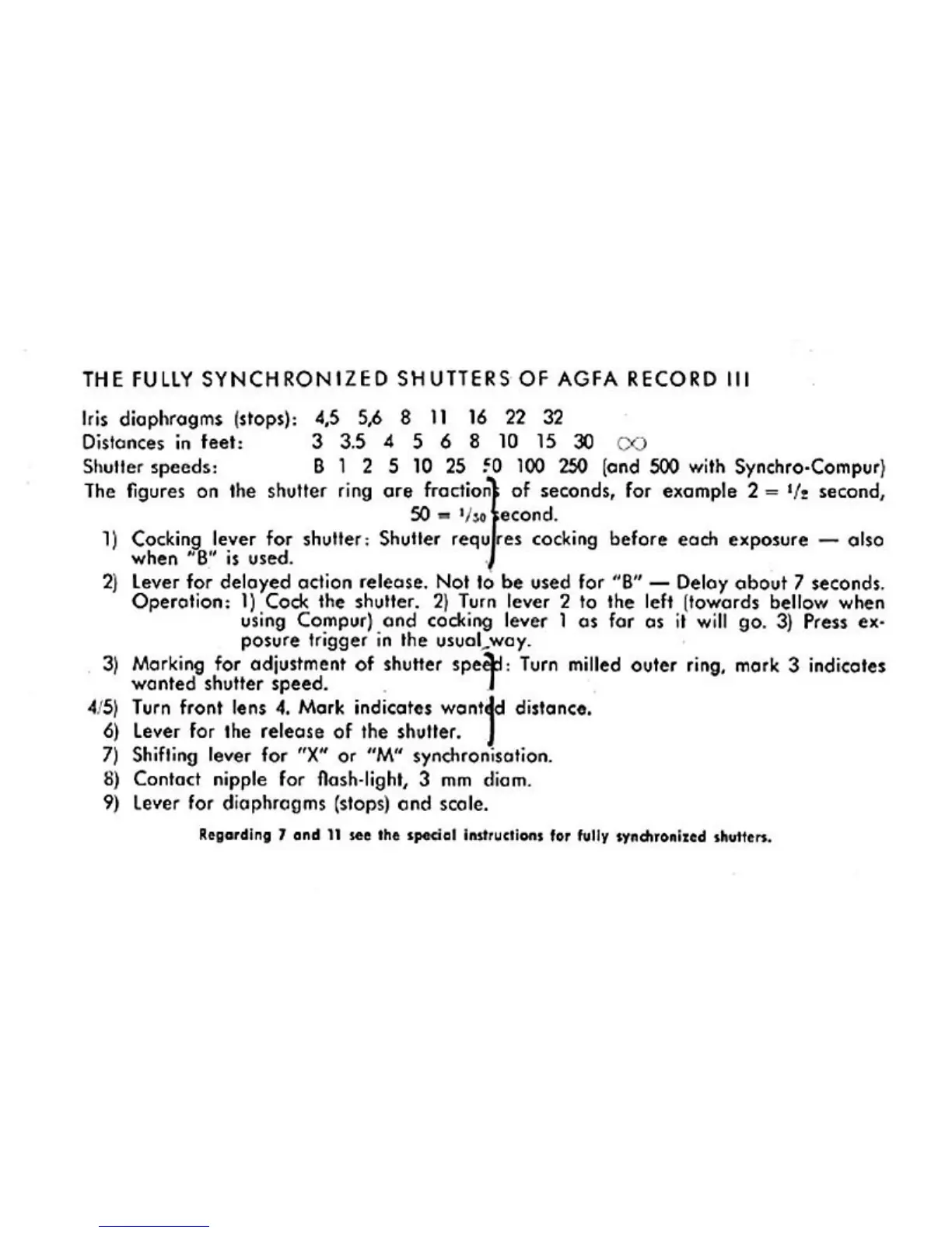 AGFA Record III - Shutter and Exposure Control; Synchronized Shutter Operation