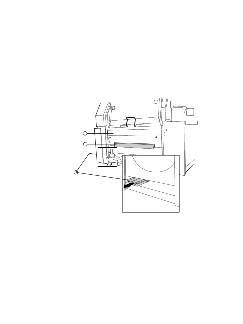 ➀—The light shield. ➁—The front punch tray. ➂—The rear punch tray.