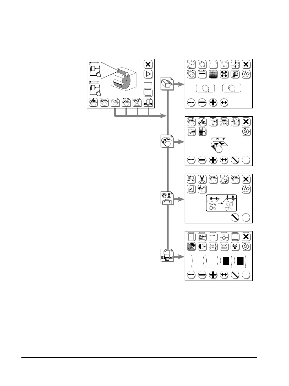 control panel screens for setting job parameters.