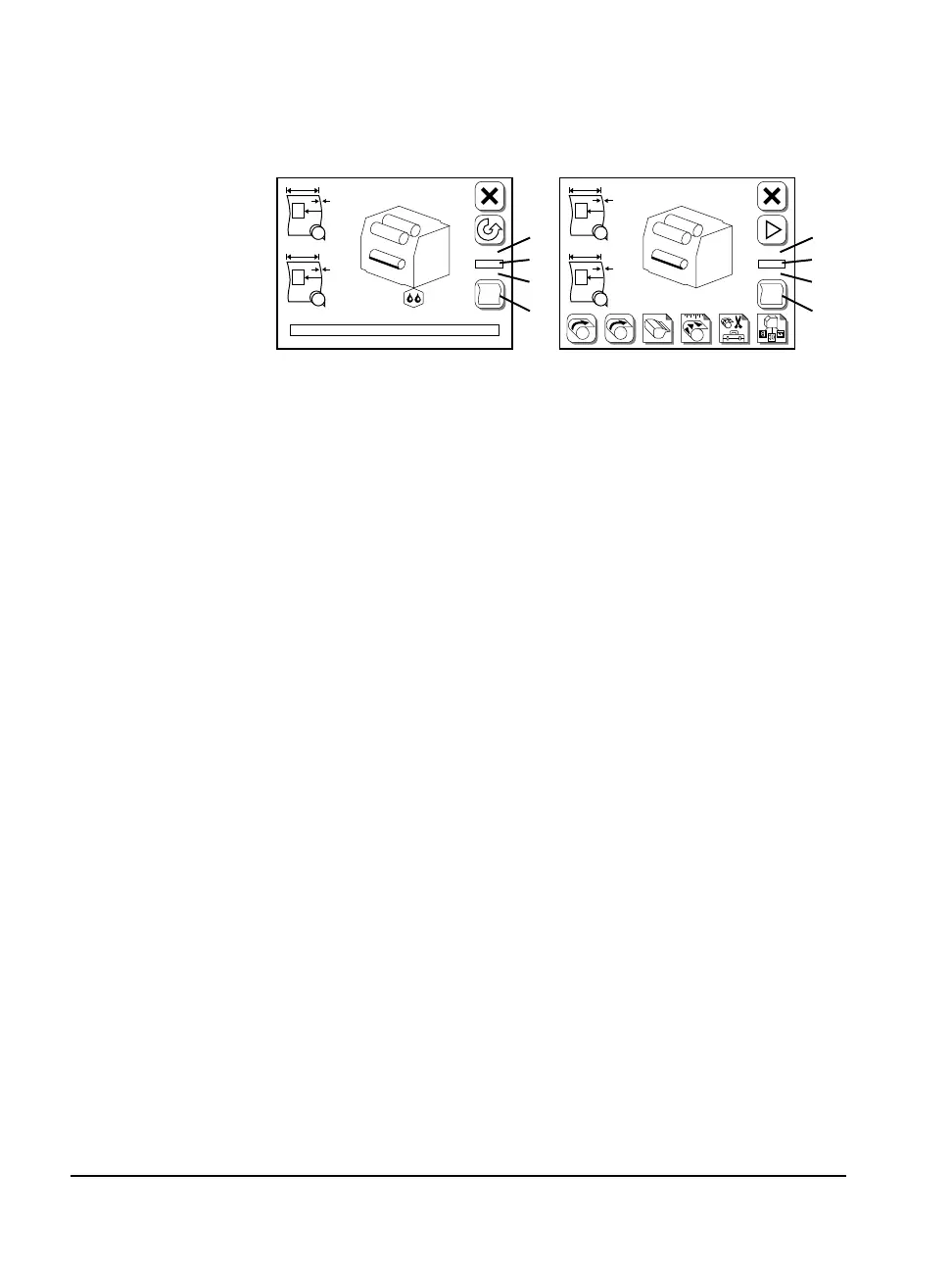 Figure 2.22 Job status display. Run Screen (left) and Pause Screen (right).