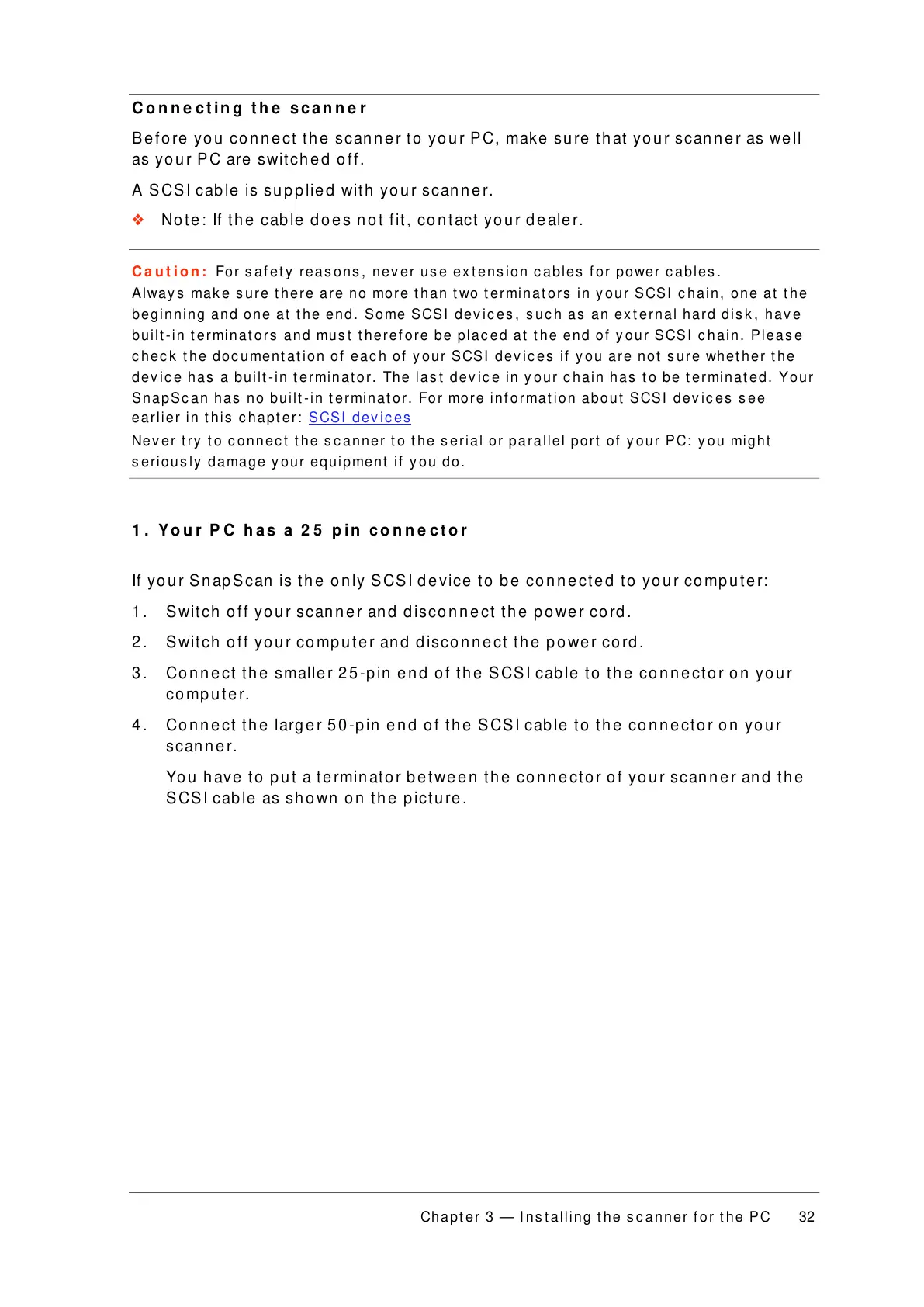 SnapScan has no built-in terminator. For more information about SCSI devices see