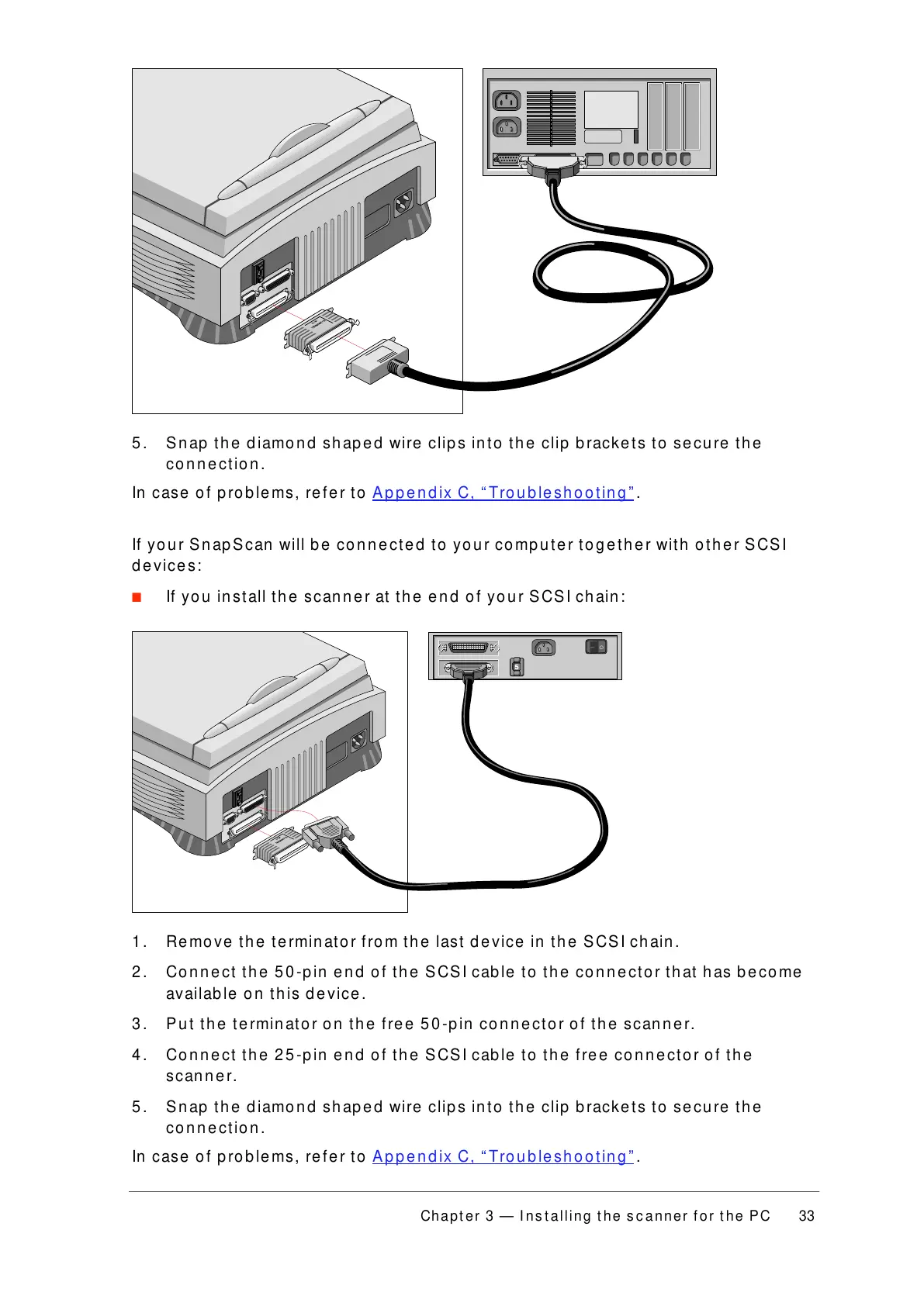 3. Put the terminator on the free 50-pin connector of the scanner.