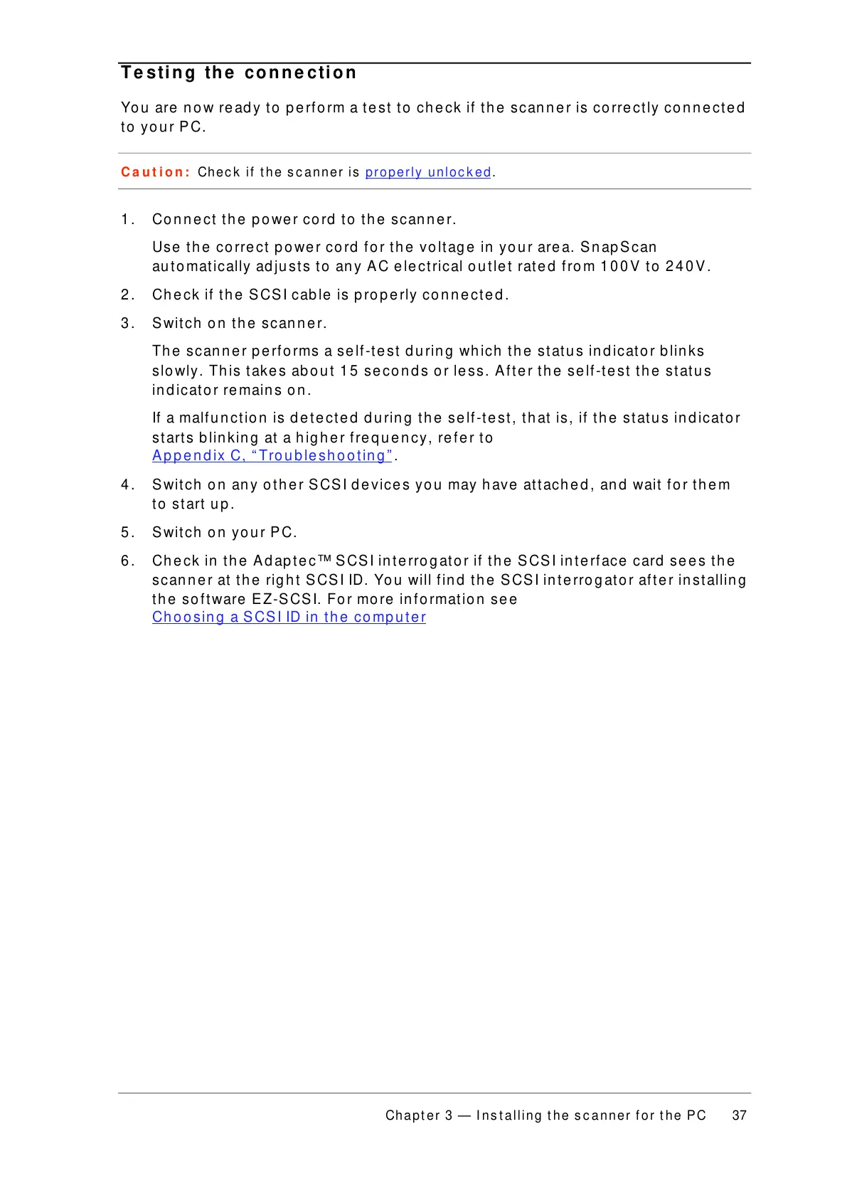 scanner at the right SCSI ID. You will find the SCSI interrogator after installing