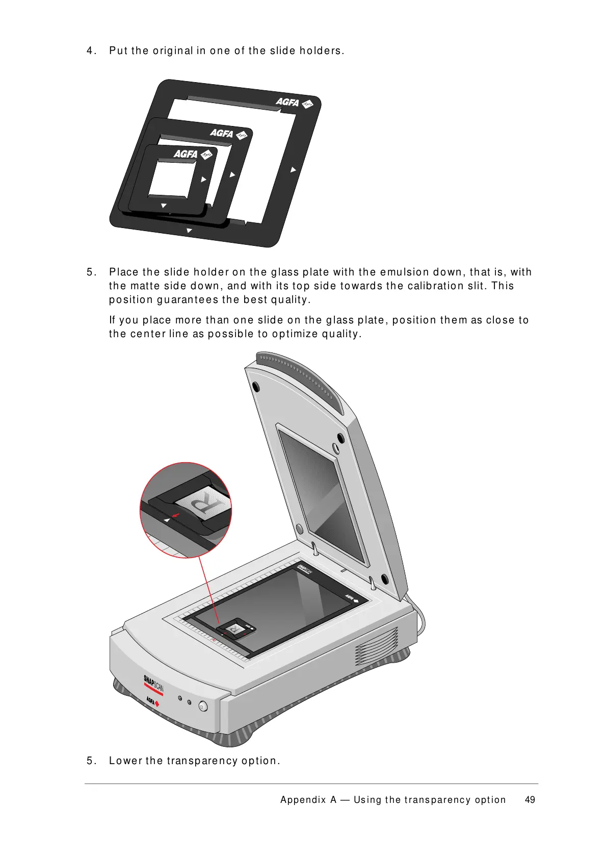 5. Place the slide holder on the glass plate with the emulsion down, that is, with