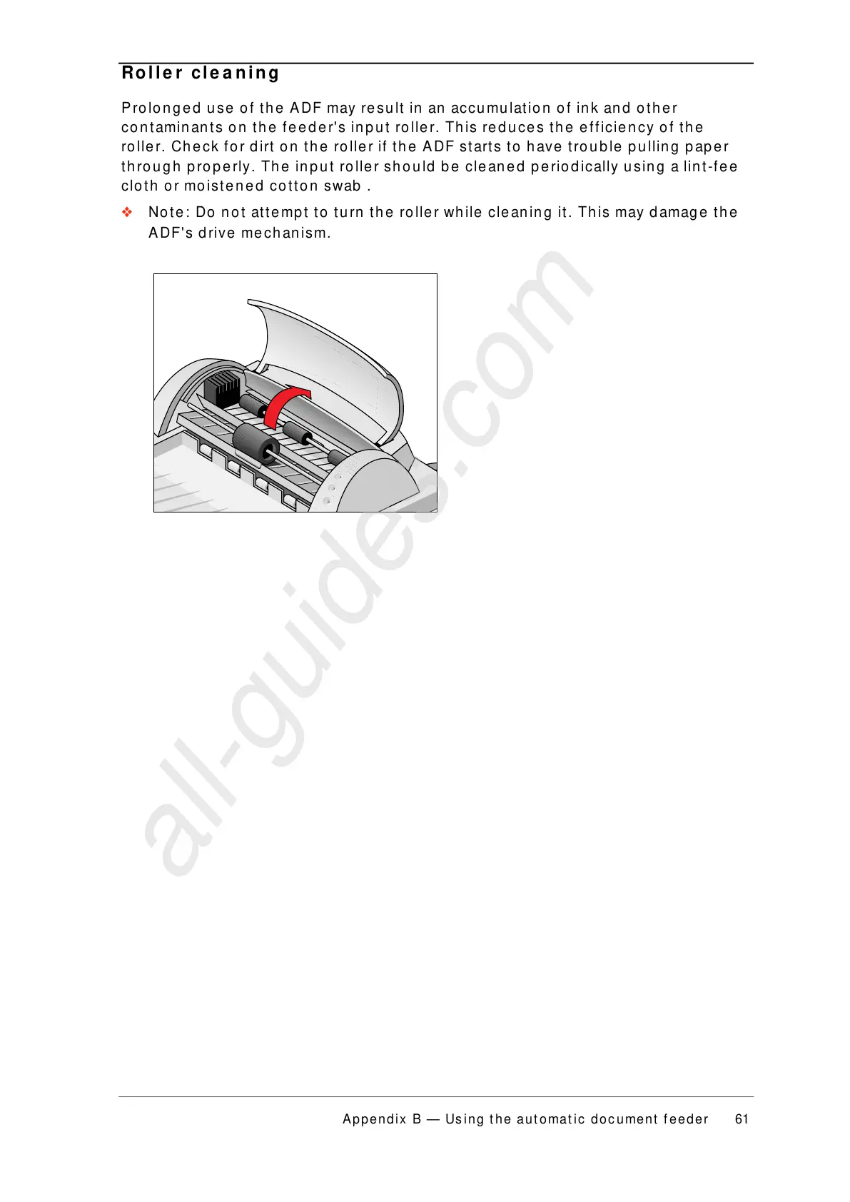 roller. Check for dirt on the roller if the ADF starts to have trouble pulling paper