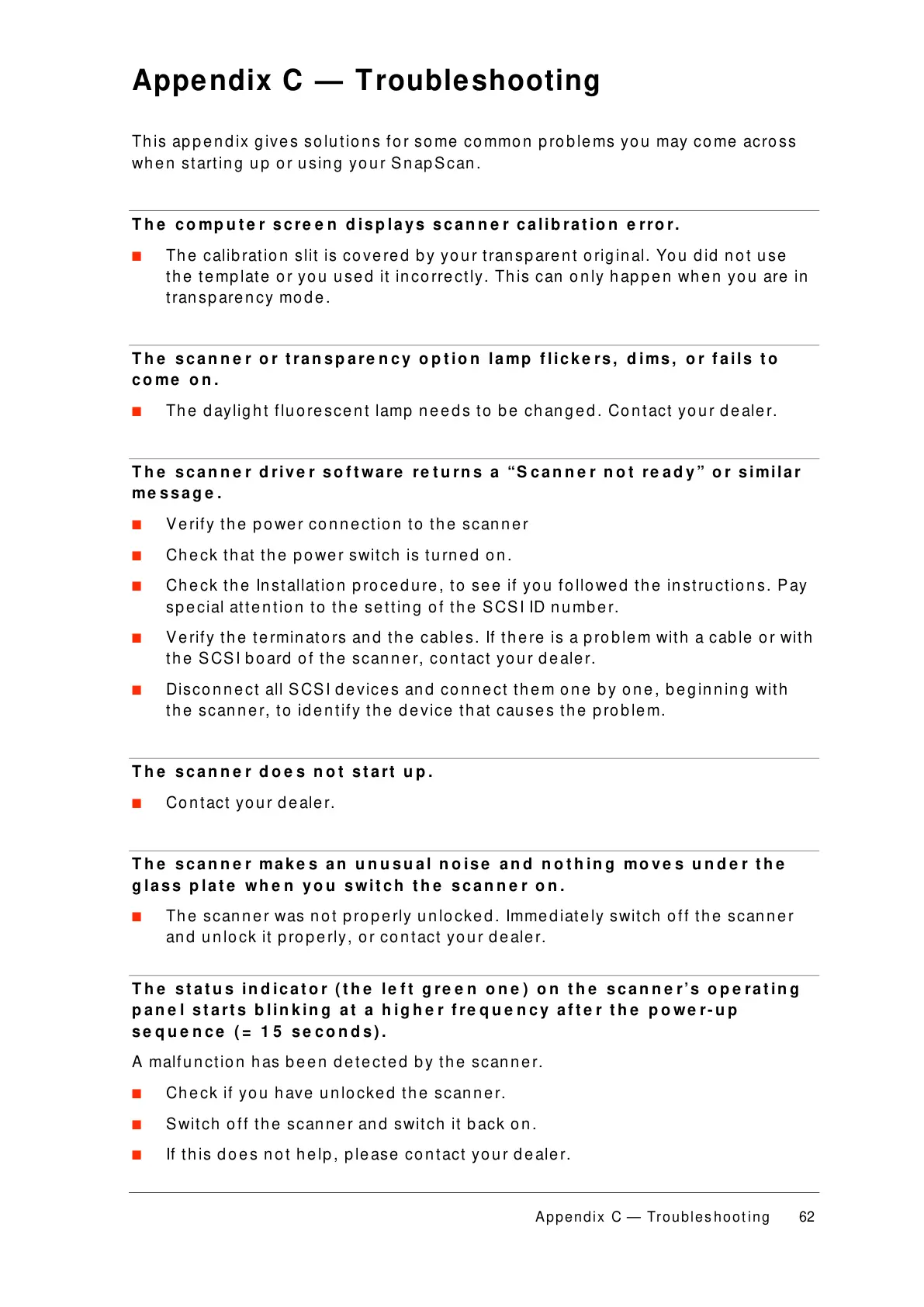 ■ The scanner was not properly unlocked. Immediately switch off the scanner
