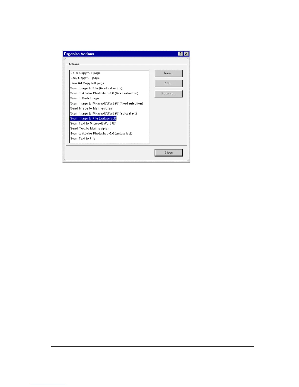 # Note: Remove will be enabled when a user defined action is selected. The default actions