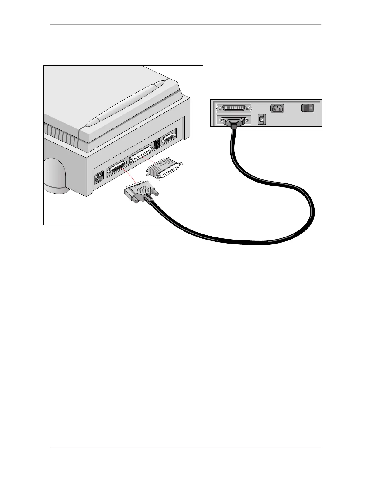 4. Connect the 25-pin end of the SCSI cable to the free connector of the scanner.
