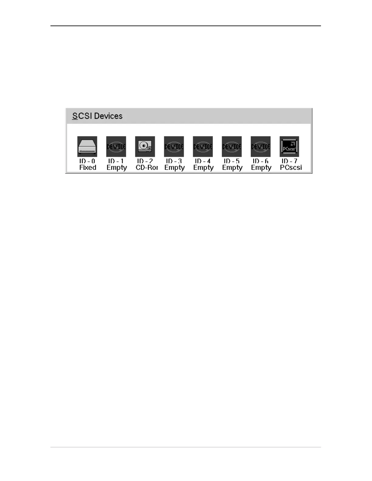 Your PC always occupies ID 7. If your PC is equipped with 2 SCSI-busses, the button Next Bus