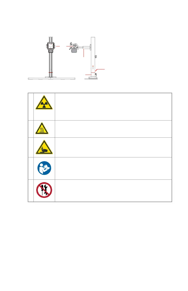 Figure 25: Warning labels on the floor mounted column and tube head unit