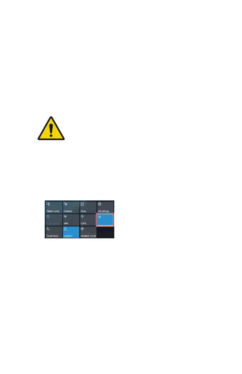 Figure 27: Windows action center with Wifi button highlighted