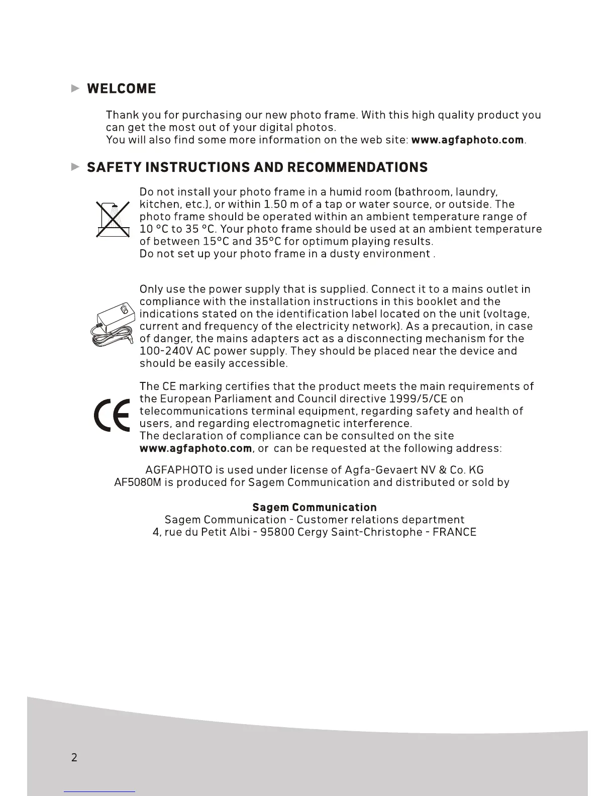 AgfaPhoto AF 5080M - Welcome Message; Safety Instructions