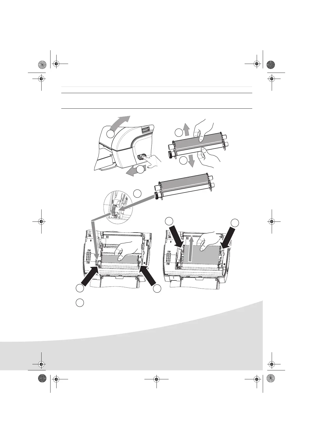 Tendez le ruban sur ces axes (6) et fermez l'imprimante.