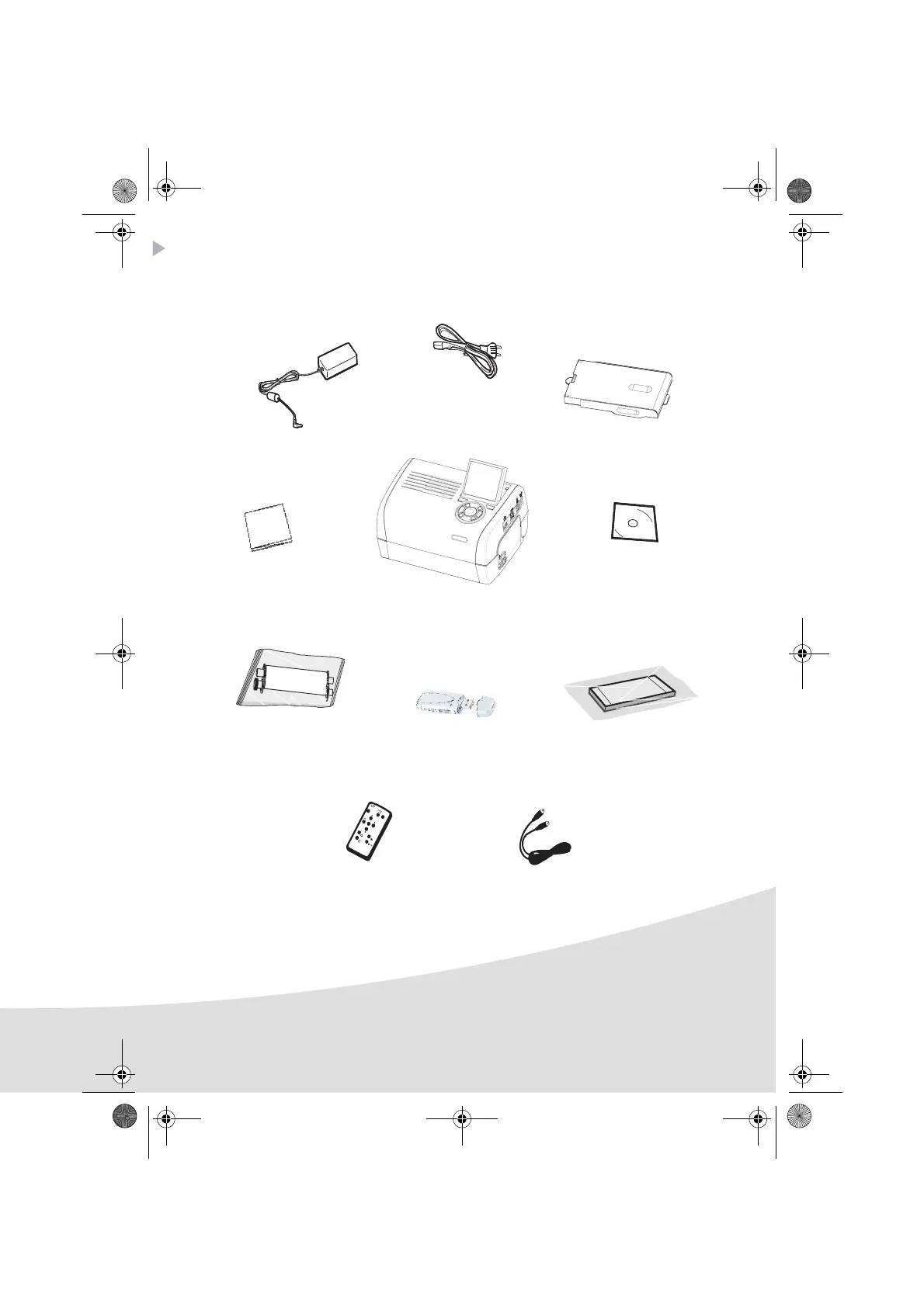 Place your set in front of you. Take out the various components for your printer and check that the