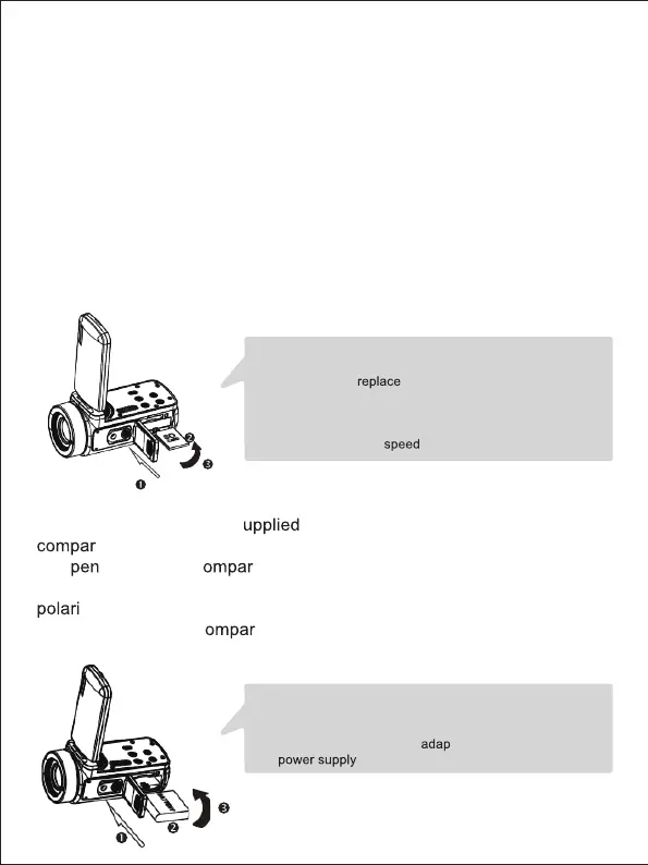1. Open the battery compartment by sliding its locking button.