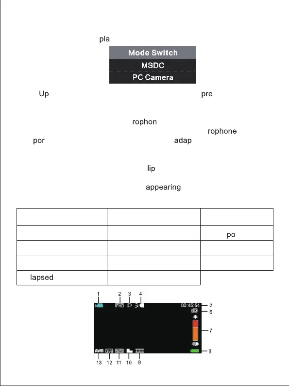 1. Video mode 6.Memory card indicator 11. ISO
