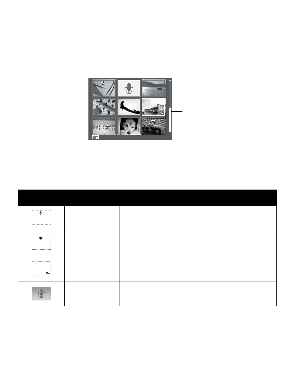 When you view the thumbnails, some images may contain icons. These icons indicate the type of