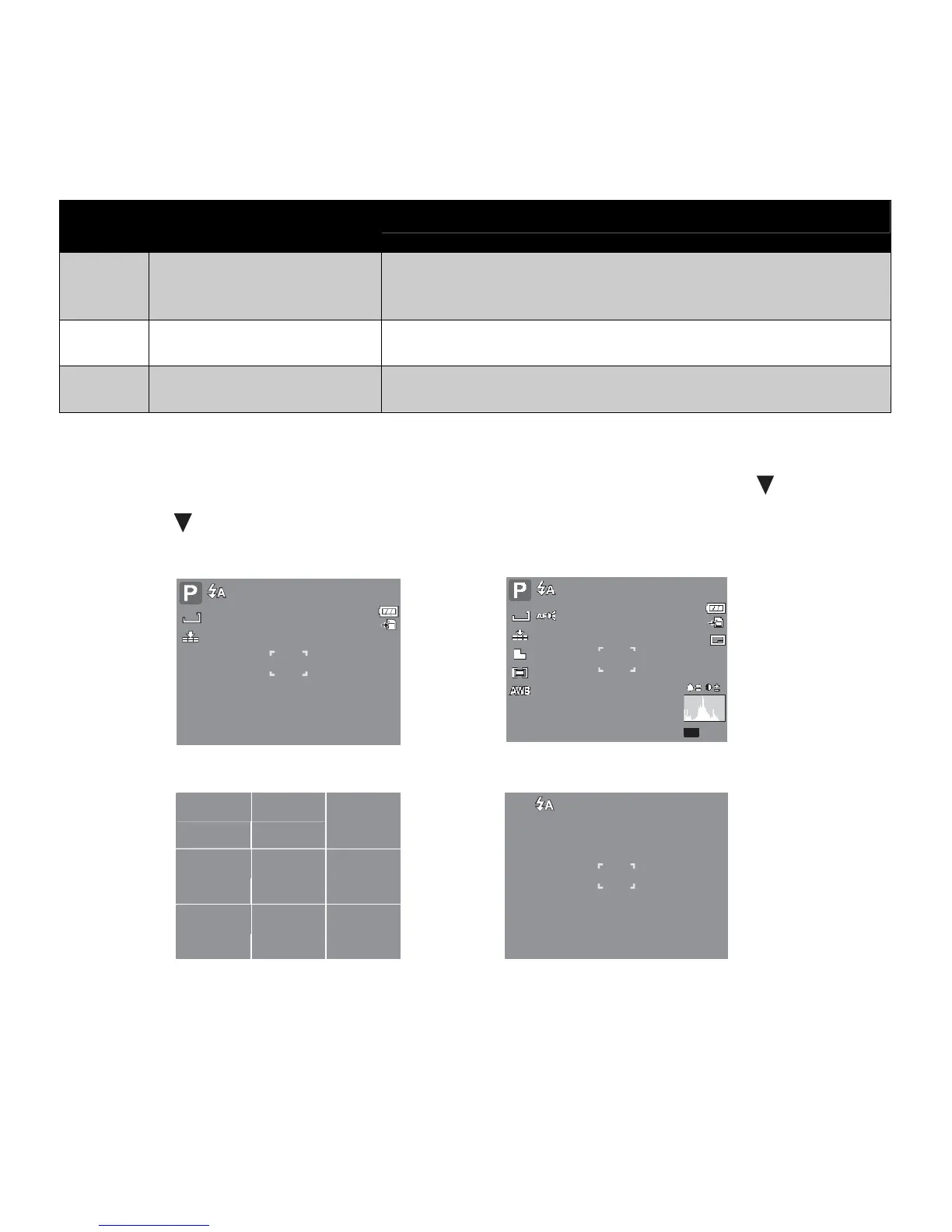 In Record Mode, the LCD display can be changed into any of the following: