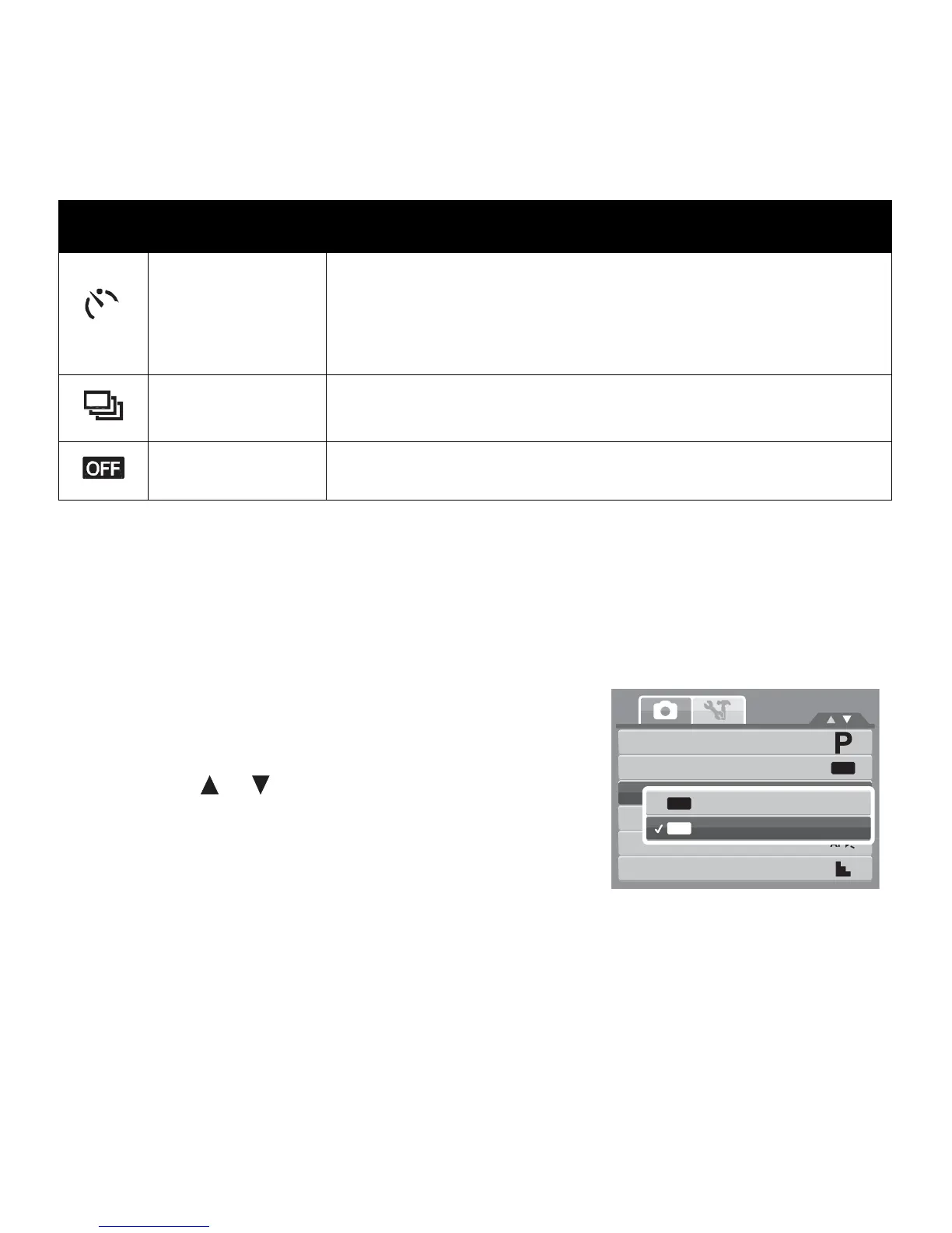 pressed. Stops shooting when the shutter button is released.
