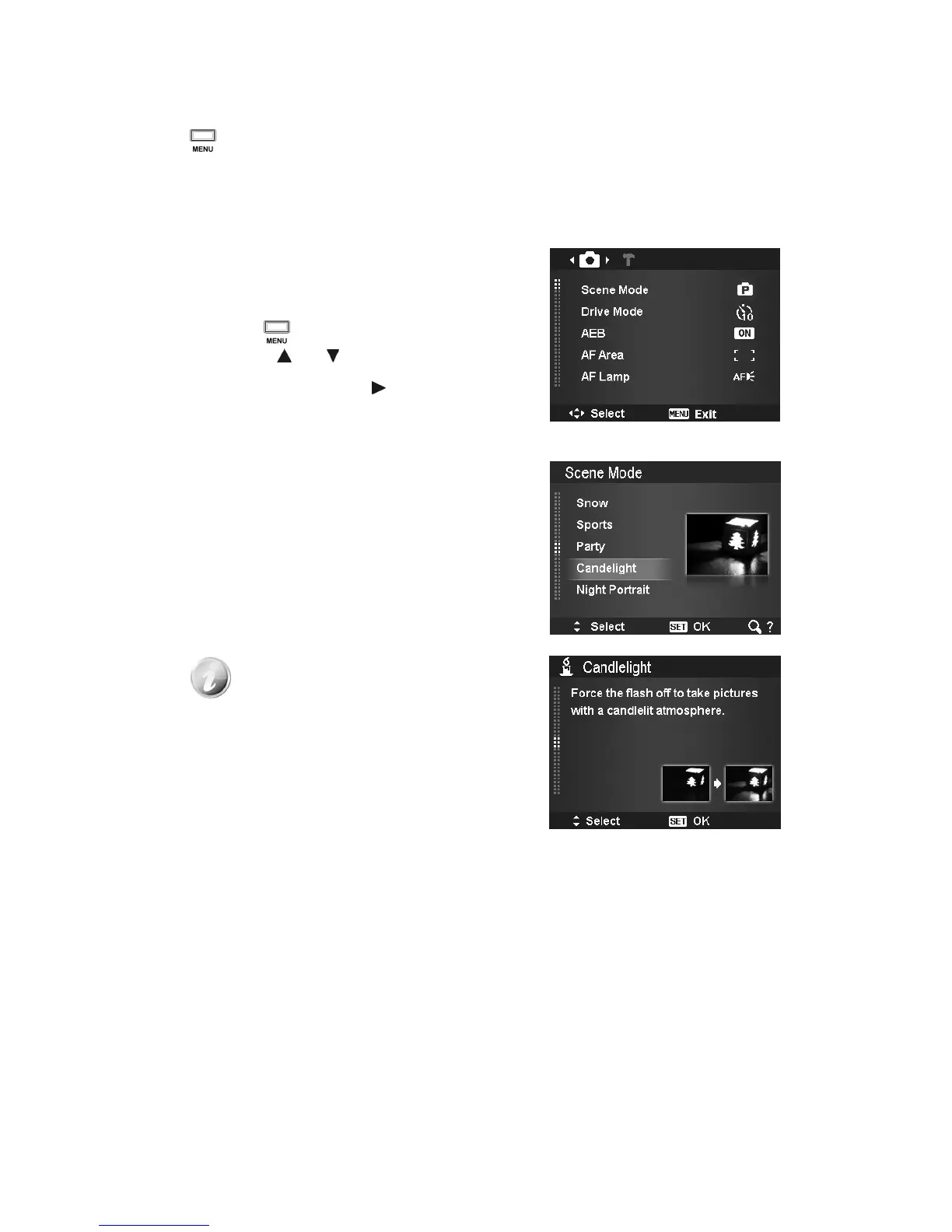 When the menu is displayed, use the 4-way navigation control and the SET button to move through