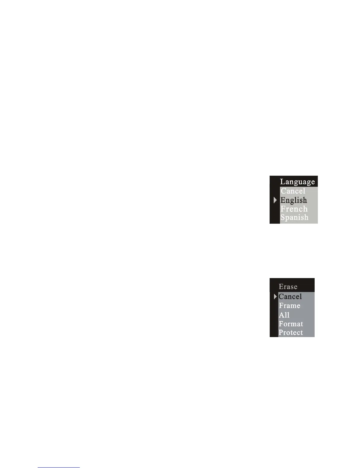 Press the menu button to enter the erase window,
