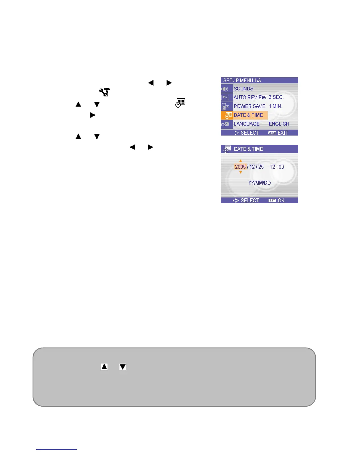 When the camera is first turned on, the date and time setting will not be correct. So before