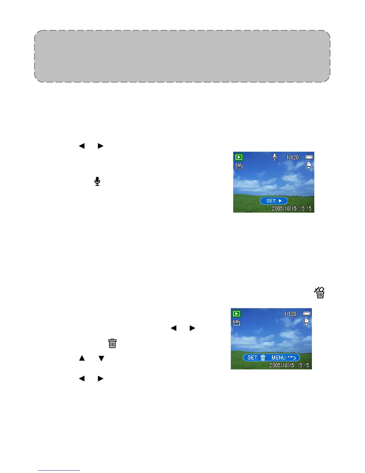 5. Press the SET button to delete the image or press the MENU button to cancel.