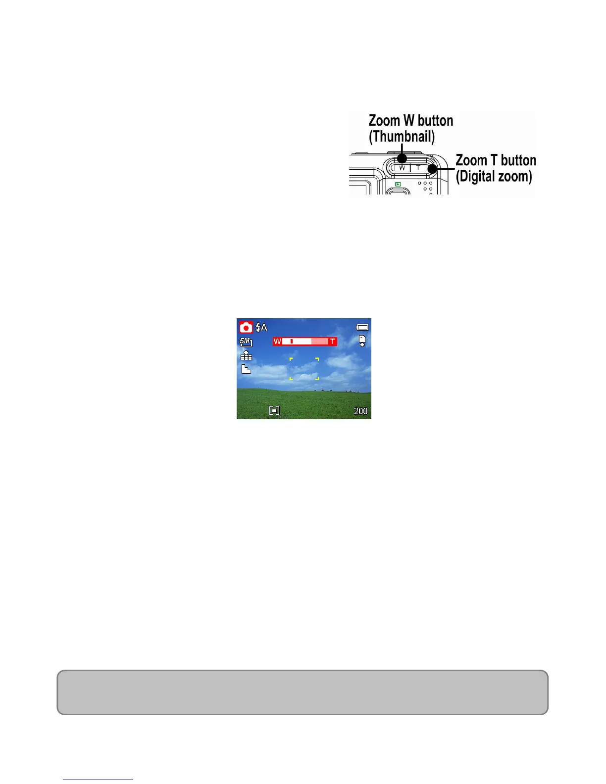 When the optical zoom factor is at maximum, zooming stops temporarily. Press the [T] again,